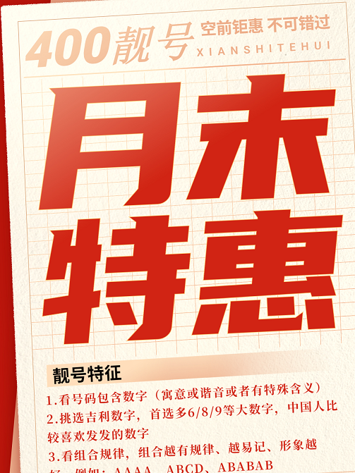 2022年11月24日 400電話辦理優(yōu)質靚號加推 感恩滿滿,靚號滿滿,服務更滿滿!靚號加推:400-6262-888 稀缺豹子靚號【中間ABAB,尾數(shù)AAA】性價比高加推:400-8778-208400-1878-298400-699-7968400-722-1918400-077-1277 優(yōu)惠活動 2022年11月24日 0 點贊 0 評論 2504 瀏覽