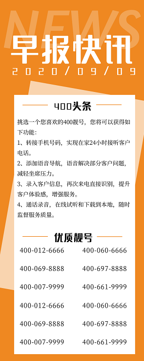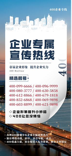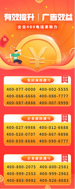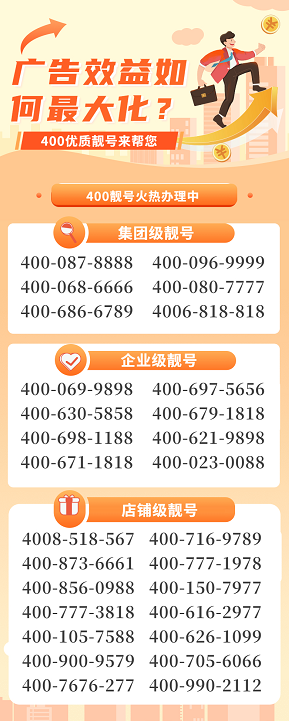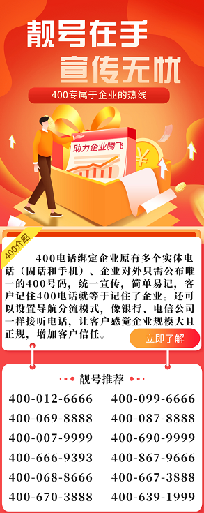 2022年5月6日 400電話優(yōu)質(zhì)號(hào)源推薦 廣告效益如何最大化?進(jìn)線問題和占線問題怎么解決?客戶滿意度如何提升?——辦理一個(gè)400400-087-8888 400-096-9999400-068-6666 400-080-7777400-686-6789 4006-818-818集團(tuán)頂級(jí) 優(yōu)惠活動(dòng) 2022年05月06日 0 點(diǎn)贊 0 評(píng)論 2455 瀏覽
