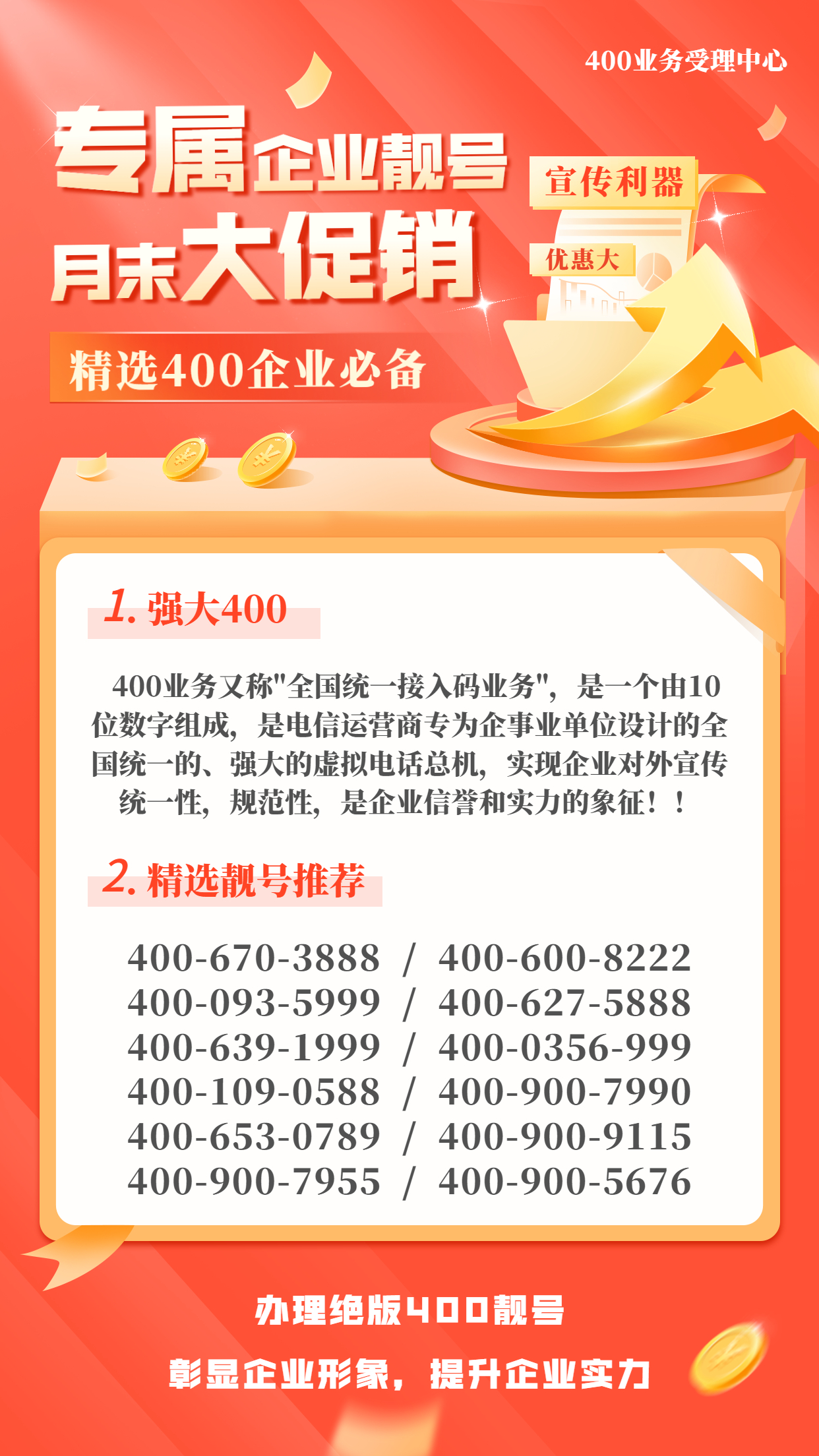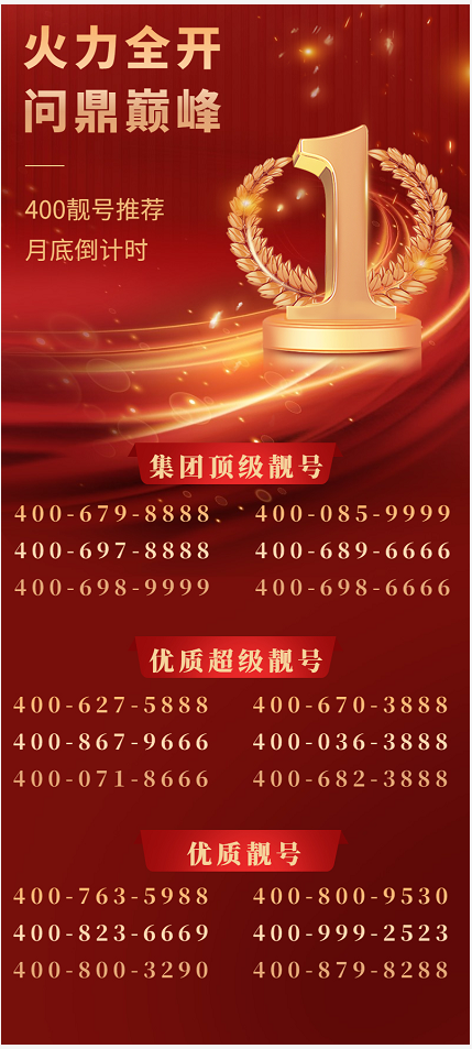 2022年4月26日 400靚號加推 喜歡大數(shù)字的老板看過來啦!福利靚號傾情推薦:400-9697-988后七位都是大數(shù)字,且是升序久順久持久發(fā)發(fā)風(fēng)水測評:吉(思慮周詳,準(zhǔn)備力行,不失先機,可望告捷 ) 優(yōu)惠活動 2022年04月26日 1 點贊 0 評論 2475 瀏覽