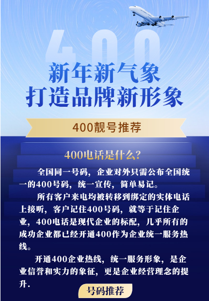 【2023年1月3日】400電話申請(qǐng)辦理企業(yè)400服務(wù)熱線優(yōu)質(zhì)靚號(hào)今日推薦 靚號(hào)我有,宣傳無(wú)憂;400靚號(hào)助力企業(yè)宣傳,兔飛猛進(jìn);萬(wàn)里征程自今始,揚(yáng)帆遠(yuǎn)航天地寬。<<<400今日精選>>>400-012-0000400-050-5555400-099-6666400-002-7777 優(yōu)惠活動(dòng) 2023年01月03日 0 點(diǎn)贊 0 評(píng)論 3263 瀏覽