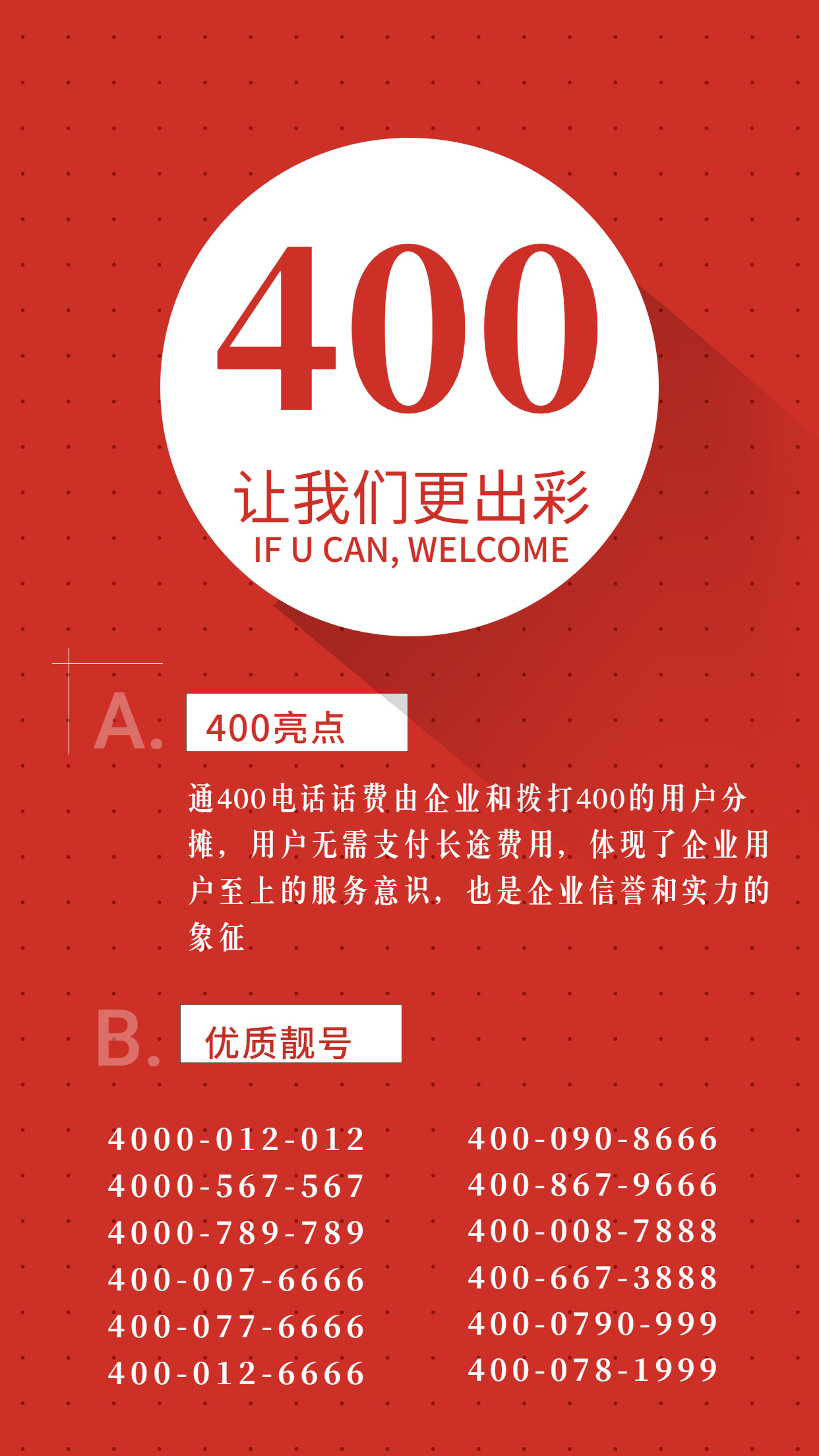 400電話智能呼轉(zhuǎn)就是按照雙方預(yù)先預(yù)定的呼轉(zhuǎn)號(hào)碼,由中國(guó)聯(lián)通新版400電話系統(tǒng)自動(dòng)判斷呼轉(zhuǎn),其中包括按順序呼轉(zhuǎn)、按時(shí)間呼轉(zhuǎn)、按地區(qū)呼轉(zhuǎn)等一系列設(shè)置。按順序呼轉(zhuǎn):支持:順序呼轉(zhuǎn),隊(duì)列呼轉(zhuǎn),隨機(jī)呼轉(zhuǎn)。按時(shí)間呼轉(zhuǎn):可以設(shè)置多個(gè)號(hào)碼,分別按照每天或分